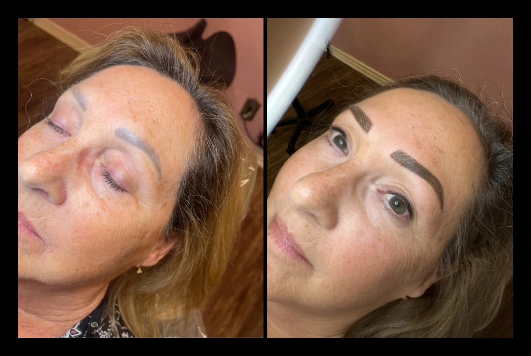 Immediately After: Brows will appear 40–60% darker, bolder, and more solid than the final result.