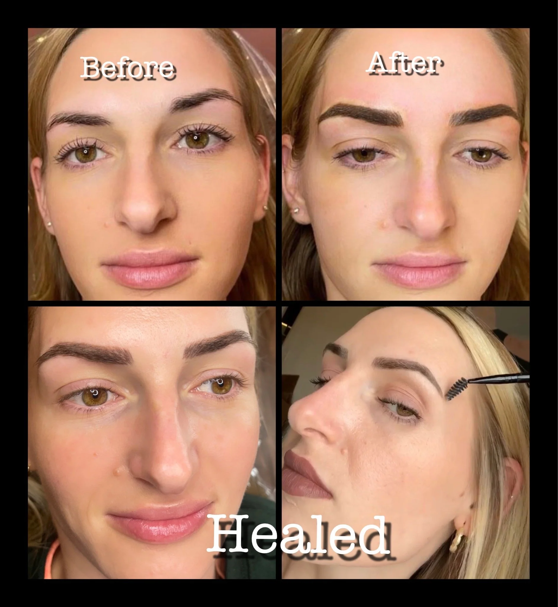 Trust the process. With proper pre-care and aftercare, your brows will heal beautifully. Any strokes that fade or soften will be addressed during your follow-up session, ensuring a polished and long-lasting result.