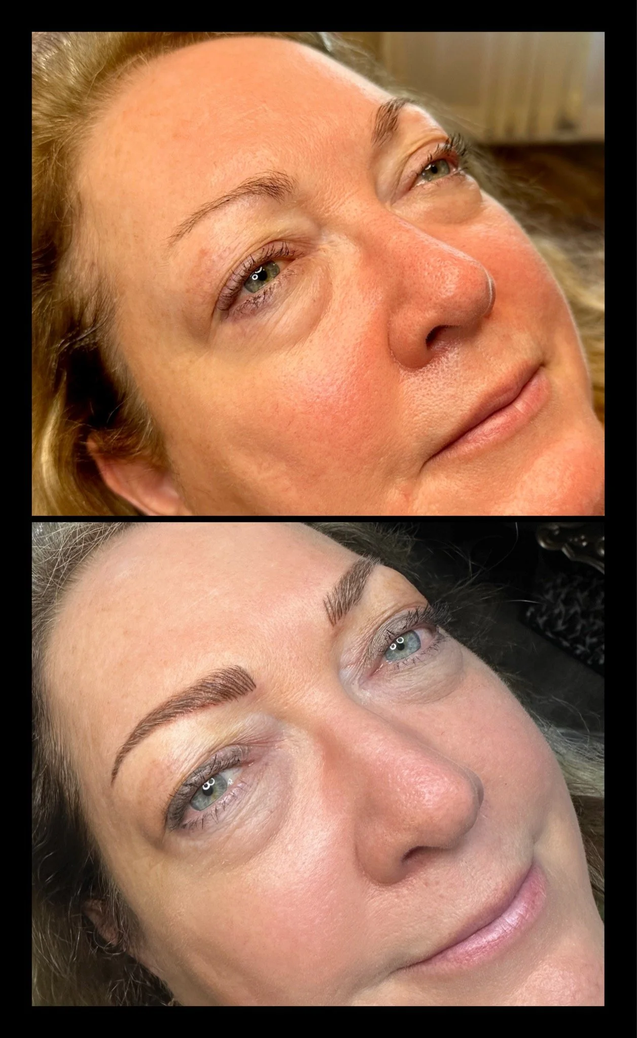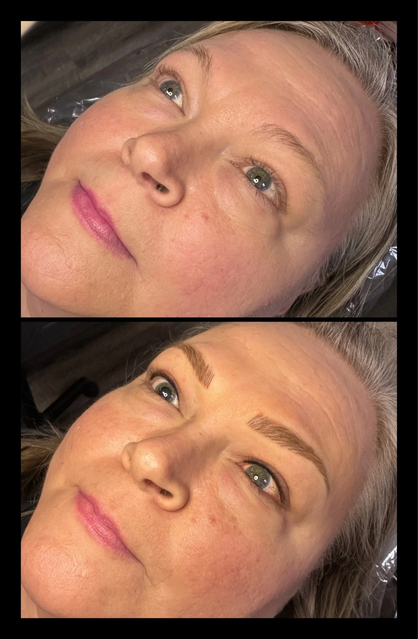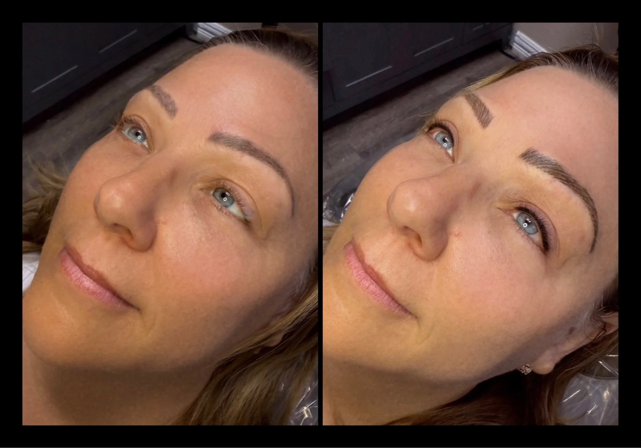 Immediately After: Brows will appear 40–60% darker, bolder, and more solid than the final result.