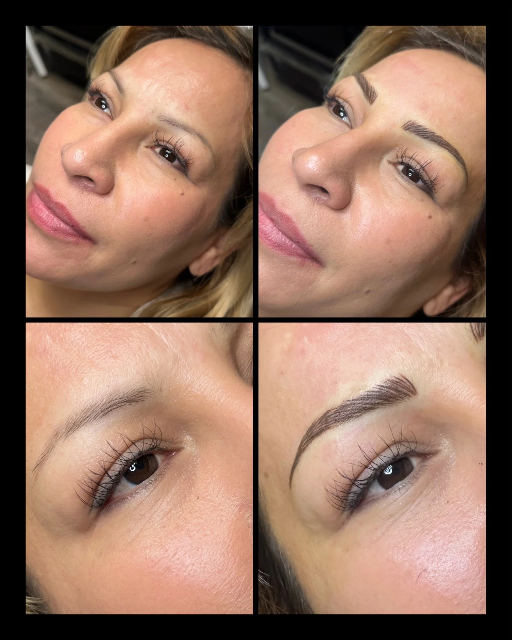 Touch-Up Appointment (6–8 weeks): Brows are perfected. We reapply strokes, add density, and refine symmetry. Final results are only achieved after this visit.